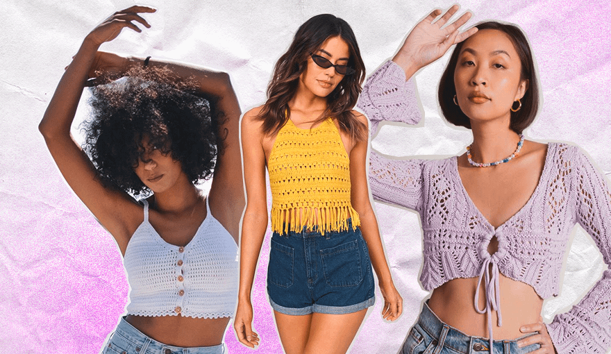 Укороченные топы, связанные крючком, подходят к легким юбкам, шортам и брюкам, а также могут стать дополнением к трикотажным и льняным костюмам – все зависит от цвета и фасона. Актуальны как базовые однотонные, светлые топы плотной вязки без декора, так и вещи с акцентными элементами: необычными бретелями, сочетанием ярких оттенков, смешением техник вязания.
