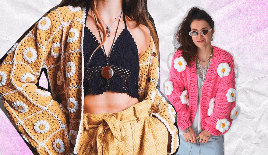 Актуальны укороченные модели на пуговицах, с элементами в виде цветов, объемных и вышитых поверх полотна. Еще в моде кардиганы со спущенным плечом, объемными и сетчатыми рукавами.