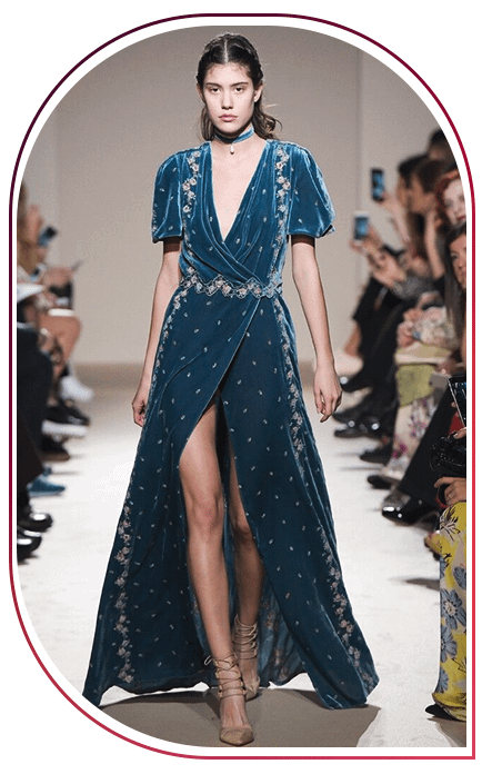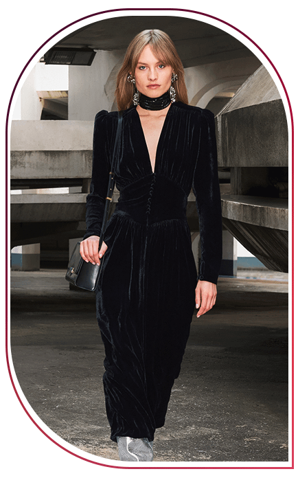 В тренде как бархатные платья с выраженной линией талии, так и модели более свободного кроя. Предпочтение отдавай платьям глубоких цветов: зеленого, фиолетового, синего или черного. Они сделают образ драматичным и сексуальным.