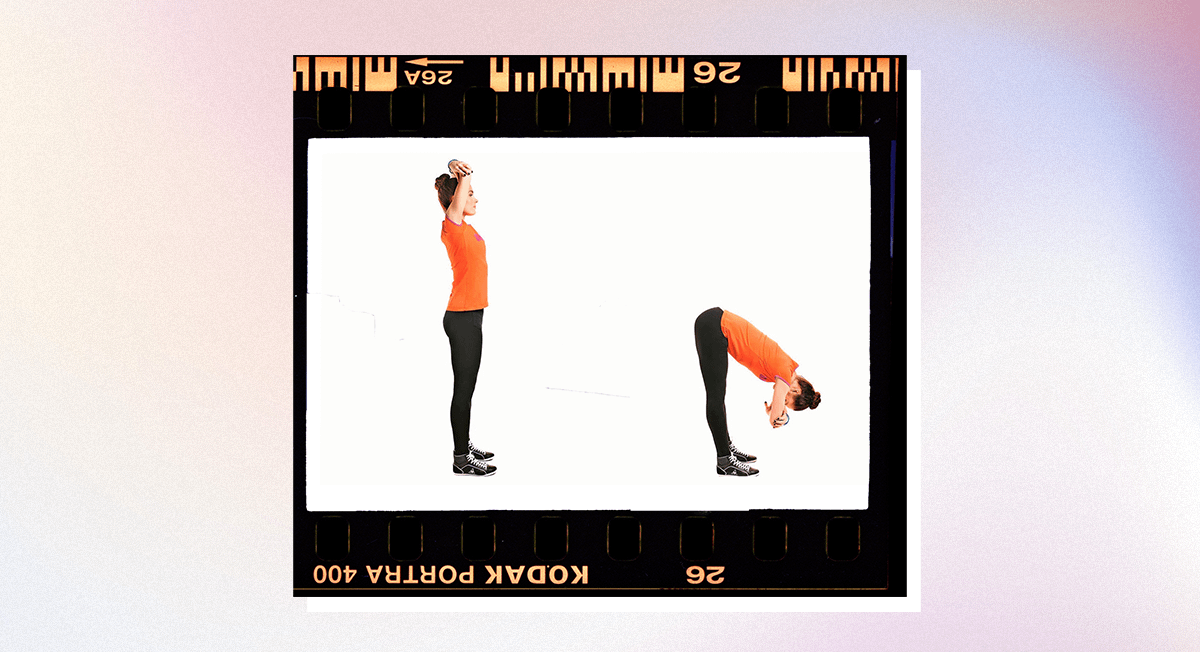 - попробуй дотянуться кончиками пальцев до пола или хотя бы до голеней;
