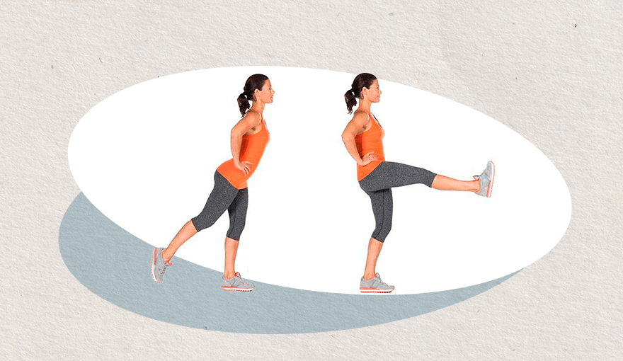- Сделай 10-12 подходов, а потом смени ведущую ногу.