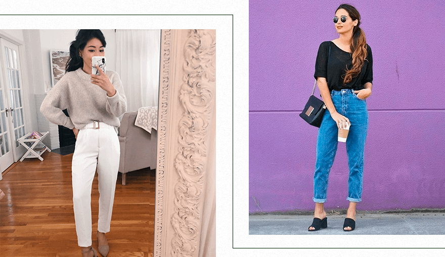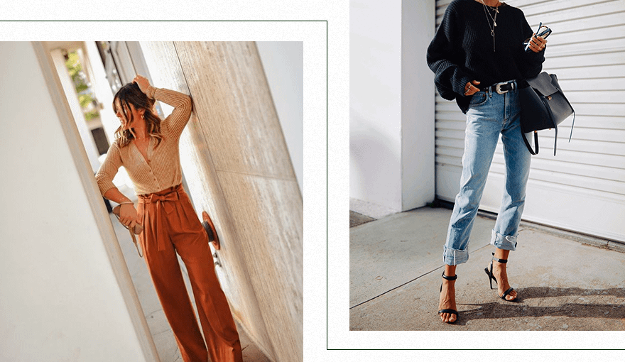 Не стоит прятать подчеркнутую талию под объемными свитерами и блузами. Образы с незаправленным верхом часто смотрятся не очень аккуратно, а также повышают шанс на то, что твоя фигура будет напоминать прямоугольник. Они идут далеко не всем, поэтому стоит заправлять верх в брюки с высокой талией.