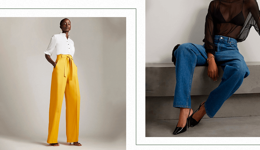 Брюки с высокой талией визуально делают ноги длиннее. Чтобы усилить этот эффект, стоит выбирать для образа обувь на каблуке или платформе. А если отказываешься от такой обуви, так как считаешь ее неудобной, обрати внимание на этот материал — в нем мы рассказывали, что сделать, чтобы ходить на каблуках было комфортнее.