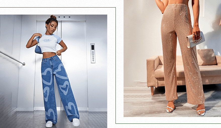 То же правило сохраняется и при выборе джинсов, если они с эффектом омбре, заметными потертостями, дырками или рисунком. Вместо декора стоит обратить внимание на модели с необычными деталями кроя: строчками, карманами, разрезами снизу.