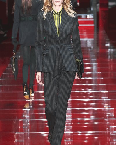 Темный пиджак и брюки в тонкую светлую полоску напоминают о старых фильмах про мафиозные кланы, где статус члена гангстерской семьи во многом подчеркивался хорошо сидящим качественным костюмом. Девушкам же можно не ограничиваться брючным вариантом, а приобрести сразу своеобразную «тройку» — брюки, юбку и пиджак. Это трио сразу расширит ваши возможности в разы, так как каждый из элементов играет не только в паре с другим, но и позволяет комбинировать варианты. Например, попробуйте надеть такой пиджак с джинсами, пышной юбкой или даже бермудами; юбку — с кардиганом или жилетом, а брюки — с вязаным свитером или свитшотом. Эти неожиданные сочетания вас приятно удивят.