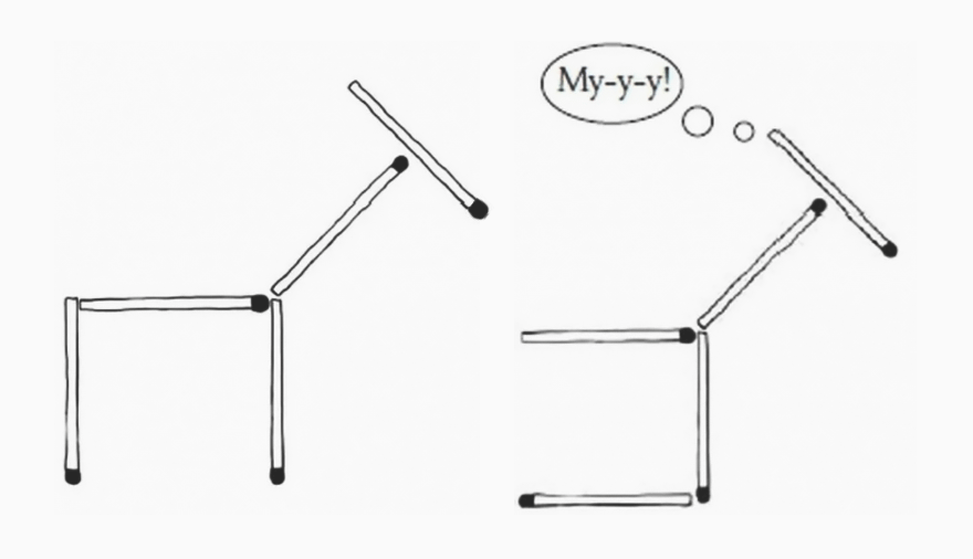 А вот еще одна простая задачка, решение которой у взрослых занимает больше времени, чем у детей. Условия простые: нужно поменять положение одной спички (смотри изображение) так, чтобы корова смотрела в другую сторону.