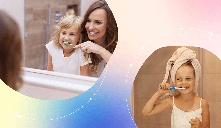 Важно рассказать детям о том, как правильно ухаживать за полостью рта. Сначала нужно очистить поверхность жевательных зубов, потом внутренние поверхности передних. После этого чистят наружные поверхности зубов. Дёсна можно аккуратно помассировать обратной стороной щетки, а язык почистить специальным скребком.