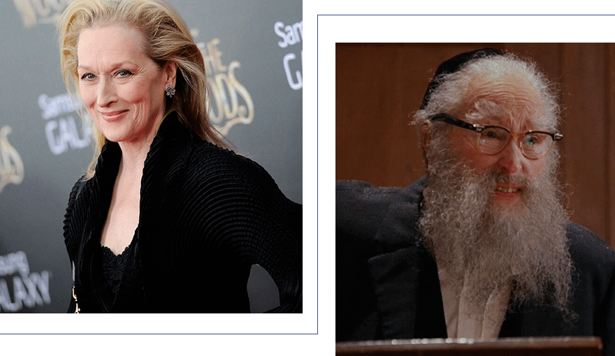 В мини-сериале «Ангелы в Америке» актриса Мерил Стрип исполнила сразу четыре роли: тещи, коммунистки, Ангела Австралии и пожилого раввина. Ради последней Стрип пришлось перевоплотиться в пожилого мужчину.