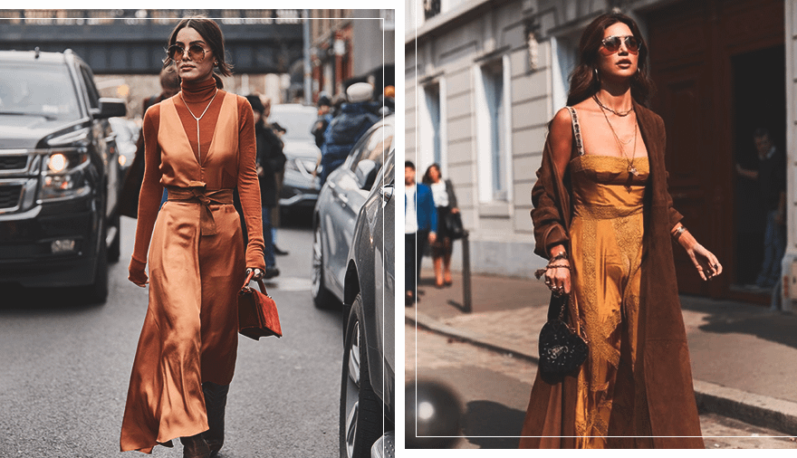 В этом сезоне в тренде как шерстяные коричневые вещи, так и легкие юбки и блузки из шелка и шифона. А вот с золотистым цветом стоит быть чуть осторожнее. Если этого оттенка в образе будет неоправданно много, он может выглядеть слишком навязчиво. Поэтому лучше отдавать предпочтение одежде простого кроя либо акцентным украшениям.