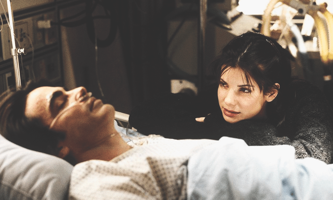 Часто ли ты встречала романтичные фильмы, в которых мужчина большую часть времени находится без сознания? Сандра Баллок притворяется невестой человека по имени Джек, который по случайности впал в кому после падения на рельсы. Ей приходится общаться с его семьей, родственники уже полюбили ее, и все ждут, когда Джек проснется. Что удивительно, в конце концов она влюбляется в крестного своего «жениха».