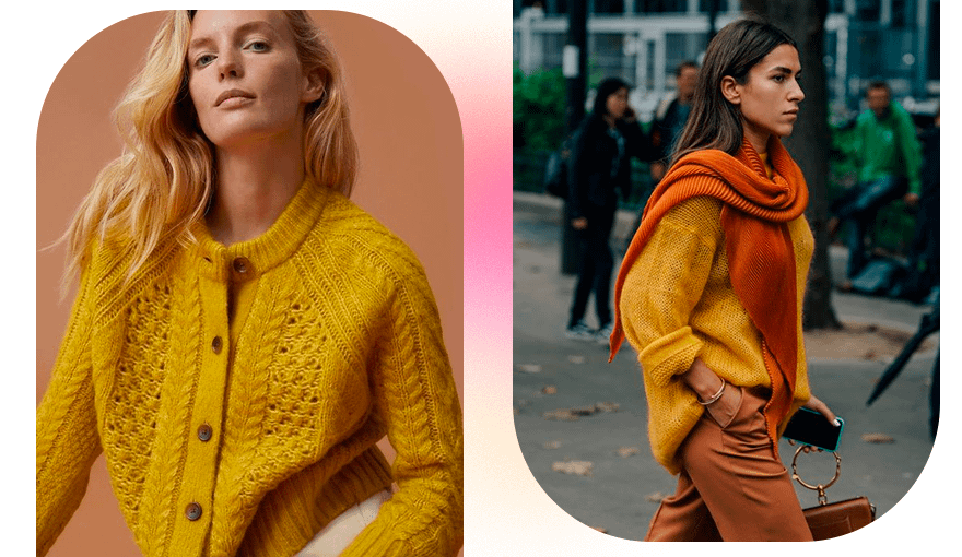 Если пальто или пуховик в горчичном оттенке кажутся тебе слишком яркими, останови выбор на акцентном худи или уютном кардигане. Такая одежда будет выглядеть уместно в сочетании и со светлыми, и с темными вещами.