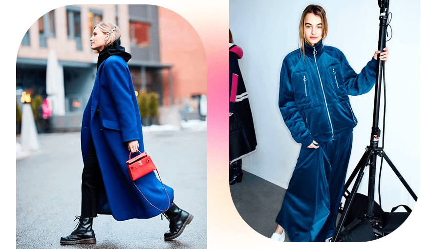 Одежда в глубоком темно-синем оттенке идеально подходит для зимнего сезона. Она может заменить черные вещи, если ты уже устала от них. К тому же темно-синий, как и черный, хорошо сочетается с множеством разных оттенков.