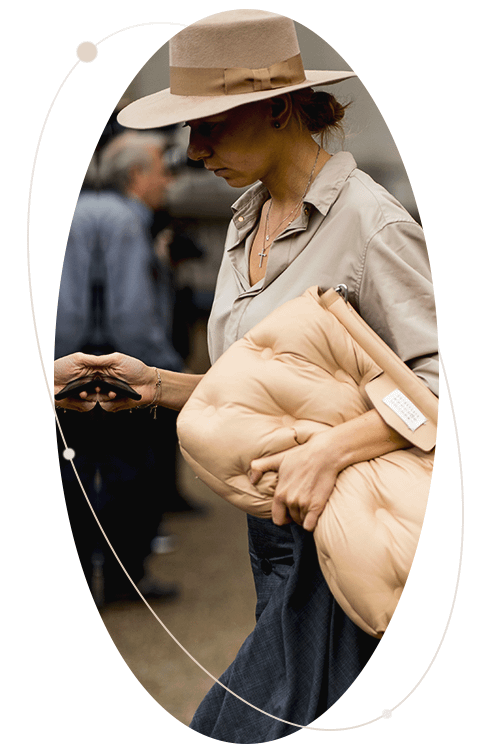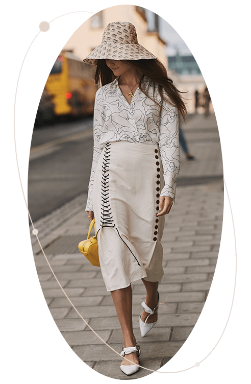 Самый эффектный и фотогеничный головной убор этой весны и лета — широкополая соломенная шляпа. Она идеально сочетается как с легкими летними платьями и сарафанами, так и с оверсайз рубашками и классическими пиджаками.