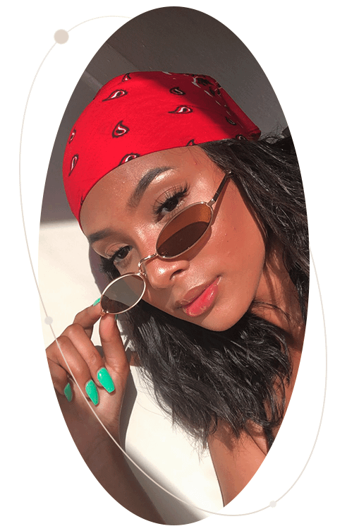 Бандану можно носить в качестве ободка, завязав ее в пиратский узел, или как косынку. Для этого аккуратно сложи ее в треугольник, набрось на распущенные, собранные в низкий хвост или небрежный пучок волосы и завяжи концы под подбородком или у затылка. Чтобы образ выглядел эффектно и стильно, в качестве аксессуаров используй винтажные очки и крупные серьги-кольца.
