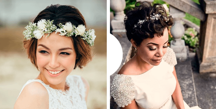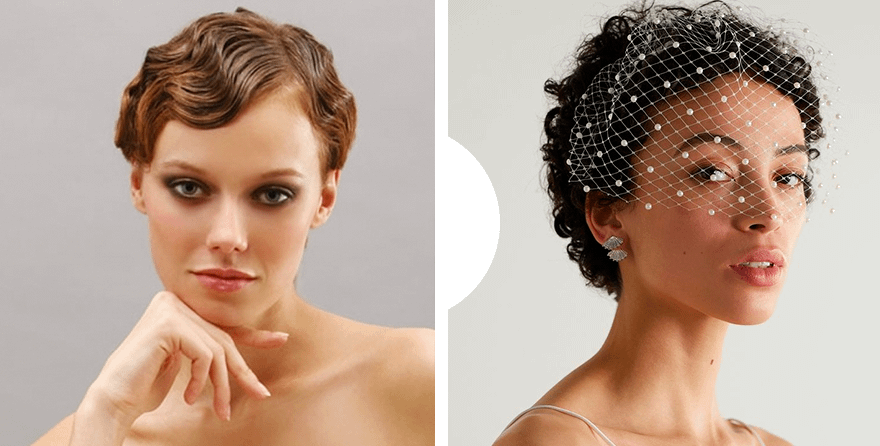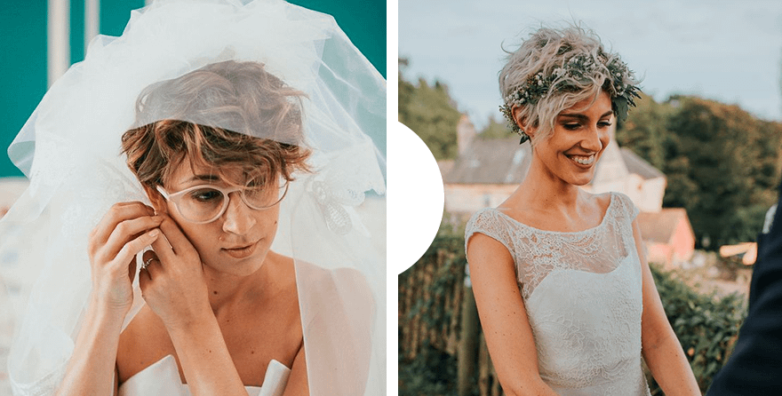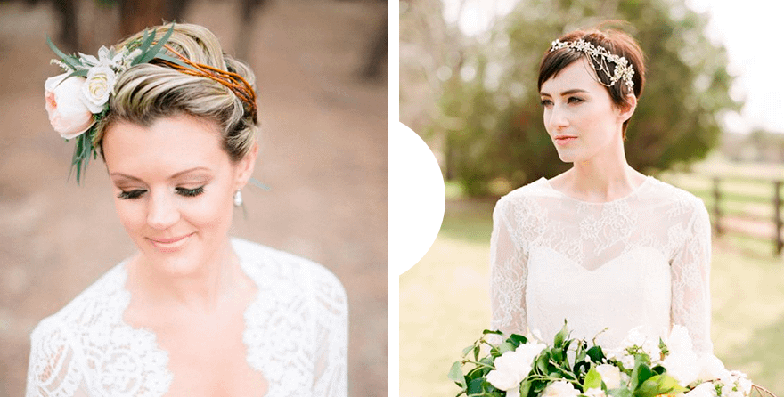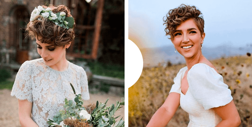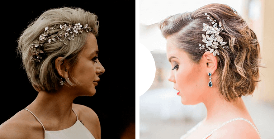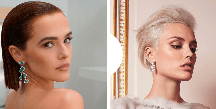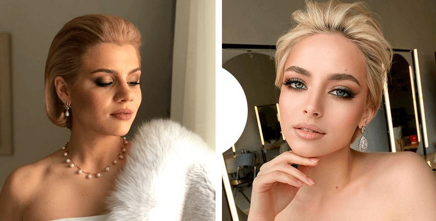 Чтобы создать женственный и элегантный свадебный образ с короткой стрижкой, зачеши волосы назад. Можешь создать «мокрый эффект» или оставить локоны идеально прямыми. Такая укладка подойдет к любому платью или свадебному комбинезону. Выбирая эту прическу, отдельное внимание удели аксессуарам — хорошо дополнят образ крупные серьги или колье.