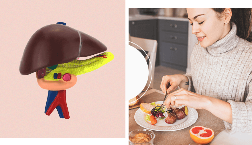 75% холестерина организм вырабатывает самостоятельно – за это отвечает печень. Также она производит липопротеины, которые переносят холестерин и другие липиды с кровотоком. А еще она играет важную роль в избавлении от холестерина с помощью желчи. А чтобы узнать, как сохранить печень здоровой — читай этот материал.