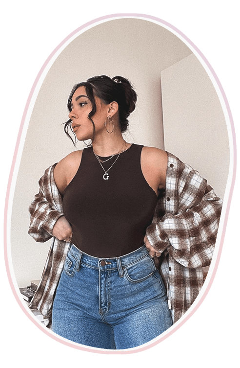 Если ты хочешь создать многослойный образ, сочетай одежду из плотных тканей с обтягивающими вещами: их используй как первый слой. Такой подход не только не увеличит тебя в размерах, но и позволит визуально выровнять пропорции и скрыть недочеты фигуры.