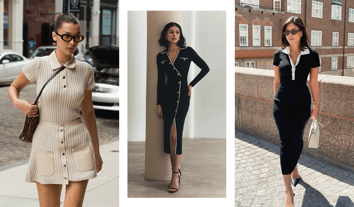 Простое платье с воротником поло помогает создать стильный образ без особых усилий. Такая одежда особенно хорошо вписывается в гардероб в стиле old money, который остается в моде уже больше года. В тренде модели в черном и бежевом оттенках.