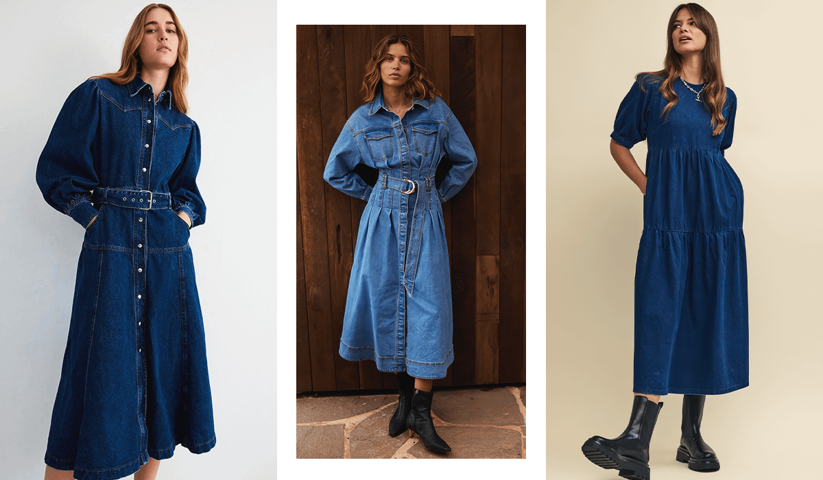 Одежда из денима никогда не уходит из моды, меняются только ее формы и оттенки. В холодное время года необязательно ограничиваться джинсовыми куртками и штанами. Если любишь создавать женственные образы, используй платья из денима. В этом сезоне в моде модели в пол и чуть ниже колена.