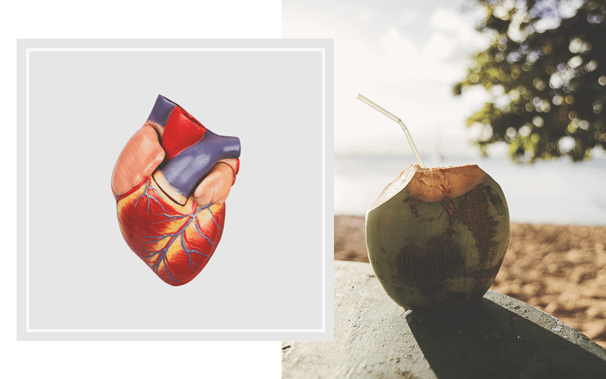 Исследования на крысах, проведенные в 2006 году, показывают, что кокосовая вода снижает уровень холестерина в крови. Она снижает его общий уровень, но при этом поддерживает количество ЛПВП-холестерина, который нужен для поддержания организма. Специалисты кафедры биохимии Университета Керала в Индии выяснили, что кокосовая вода действует, как ловастатин — безрецептурный препарат для уменьшения уровня холестерина. Кроме того, кокосовая вода снижает давление, работая как антиоксидант и повышая чувствительность к инсулину.