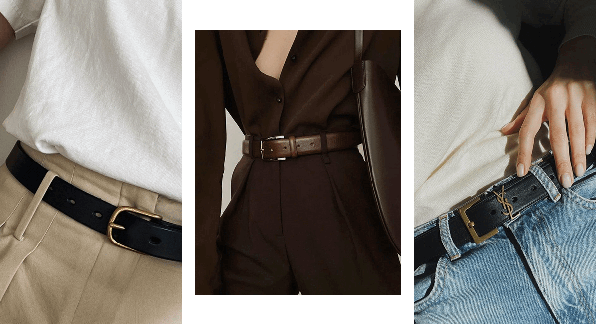 Несколько лет назад в тренде были текстильные ремни, чуть позже — модели, украшенные стразами и заклепками. Но они, как и многие модные тенденции, быстро забылись. А вот базовые кожаные ремни как выглядели стильно и дорого, так и выглядят. Особенно советуем присмотреться к ремням средней ширины, поскольку слишком толстые или тонкие модели не всегда просто стилизовать.