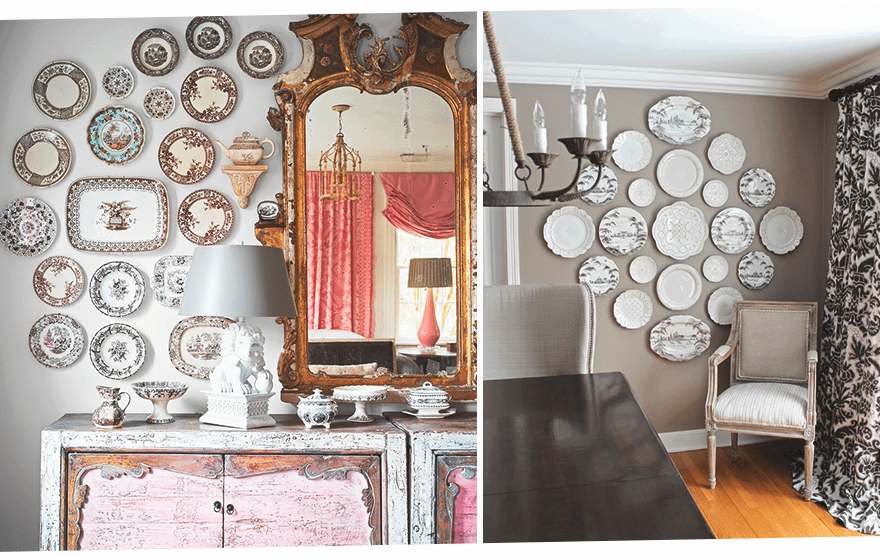 Ставить красивую посуду в серванты уже не модно, а вот вешать на стену – вполне. Создать свою мини-галерею можно из чего угодно, например, из фарфоровых блюдец. Такой декор украсит классический интерьер. Необязательно сразу иметь целый сервиз, достаточно двух-трех блюдец, к которым в перспективе можно добавлять новые. Это и стильный декор, и новое хобби – коллекционирование фарфора.
