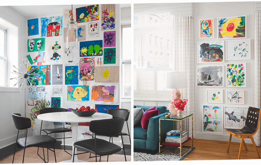 Даже детские рисунки могут выглядеть стильно, если опрятно и гармонично расположить их. Выбери подходящую стену, четко разграничь пространство, на котором будет располагаться галерея детского творчества. Помести картины в современные стильные рамки – тогда они приобретут вид настоящего искусства. Но главное, твой ребенок наверняка будет гордиться собой и может решит дальше развивать творческие способности.