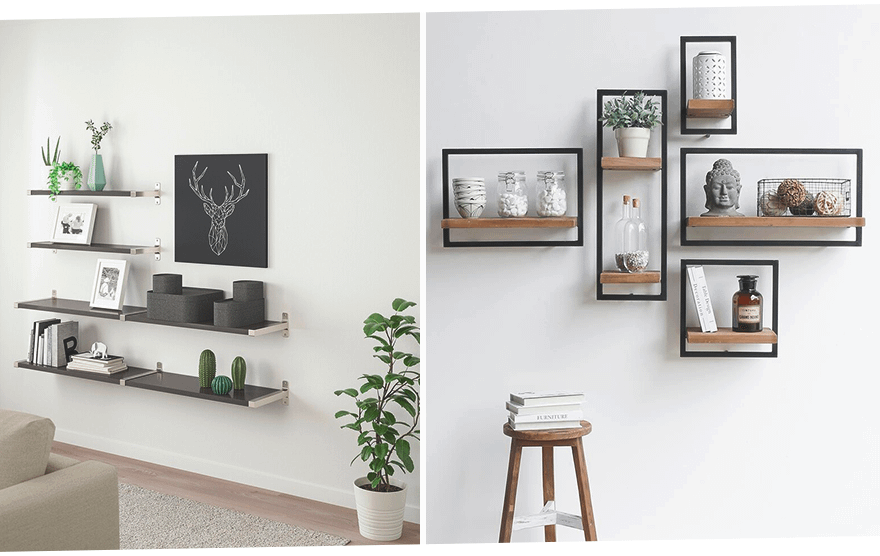 Если обычные настенные полки кажутся тебе слишком громоздкими, попробуй менее броские варианты. Минималистичные полки, к примеру, ультратонкие, стеклянные или в тон со стеной, позволяют создать впечатление, что расположенный на них предмет завис в воздухе. Это позволяет декорировать стену, не утяжеляя пространство дополнительно. Главное — надежно закрепить такую полку и не ставить на нее слишком тяжелых предметов.