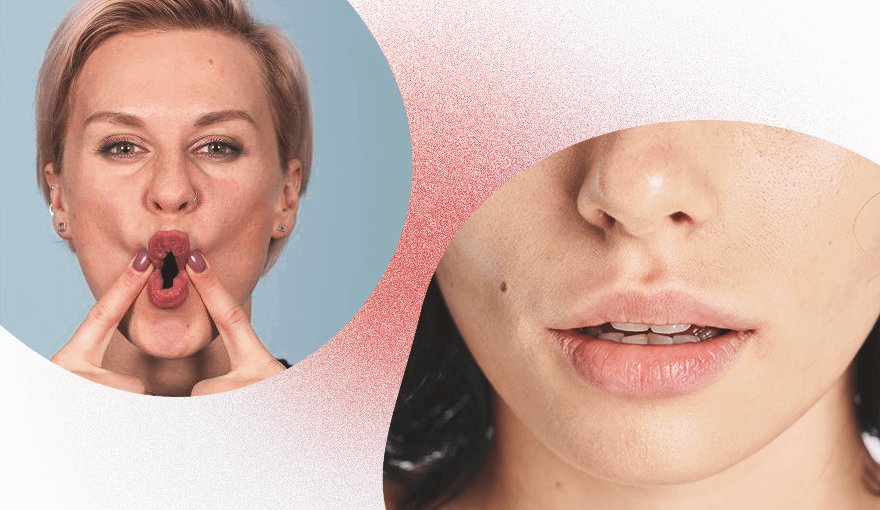 Эта техника массажа подразумевает растяжение контура губ в стороны. Она также помогает понять, спазмированы ли они, и если да, то справиться с этим. Тебе нужно поставить указательные пальцы у уголков рта и, чуть согнув их так, чтобы они проникли в полость рта, начать разводить пальцы в сторону. Повторяй упражнение до тех пор, пока не почувствуешь дискомфорт.
