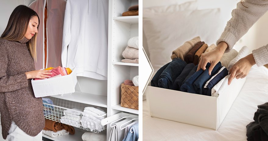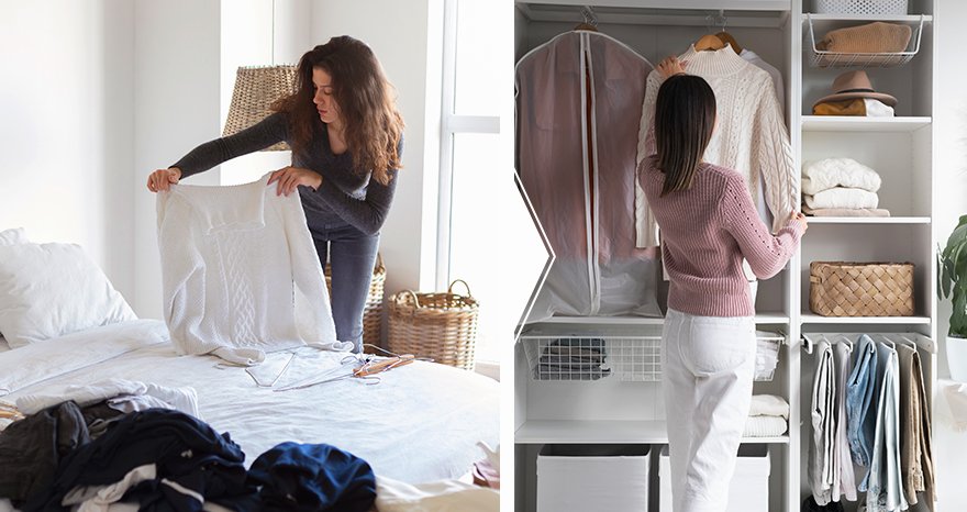 Если на дворе весна, смело отправляй зимнюю одежду храниться в контейнеры и вакуумные пакеты на дальние полки шкафа. Это позволит не загромождать пространство, проще подбирать наряды и поддерживать порядок. К тому же, разобраться в том, что ты будешь носить, а что нет, станет гораздо проще и быстрее.