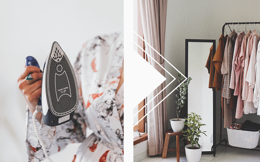 Если тебе остро необходимо погладить вещь — сделай это вечером. Вариант для ленивых: взять одежду в ванную, повесив на крючок неподалеку от душа. Конденсат, который появится во время мытья, выправит складки на вещи.