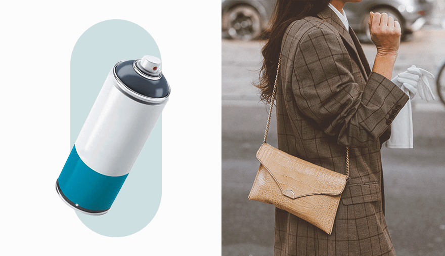 Чтобы не испортить цвет сумки, внимательно читай инструкцию к пропитке. Некоторые спреи, предназначенные для кожи и замши, обладают окрашивающим эффектом. Также для замши и лаковой кожи идут специальные влагоотталкивающие спреи, которые не подойдут для «обычной» и экокожи.
