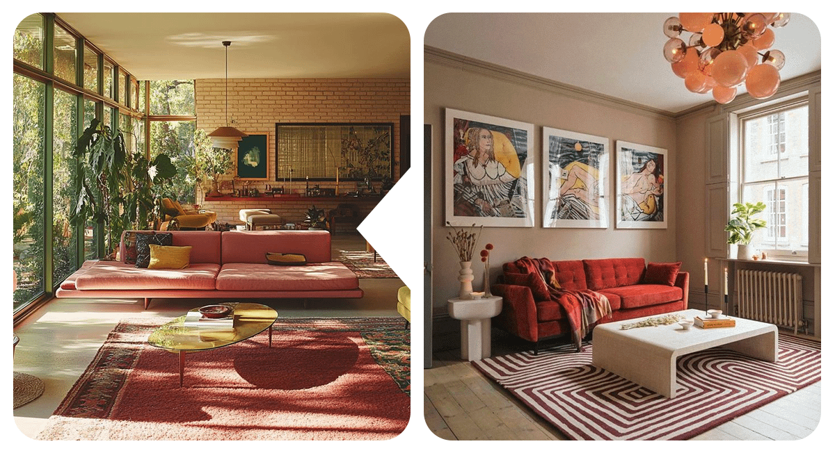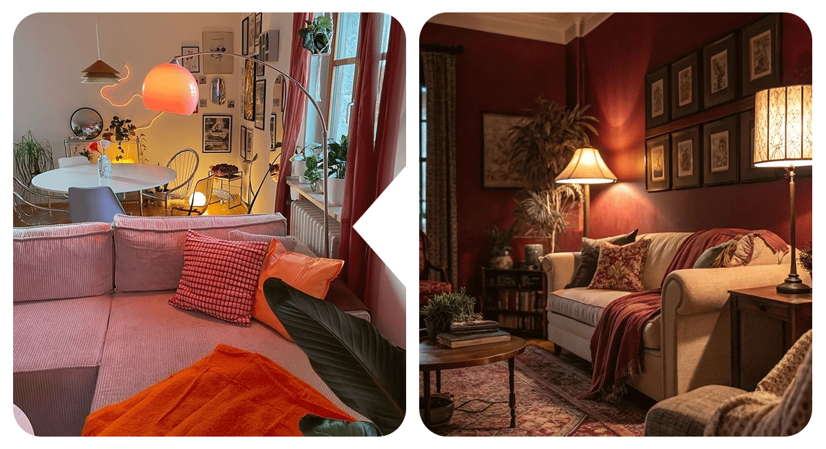 Ретро-гламур не привязан к одному десятилетию — его прелесть в смешении эпох. 50-е годы дарят нам голливудский шик с бархатными диванами, 70-е — диско-эстетику с зеркалами и насыщенными цветами.