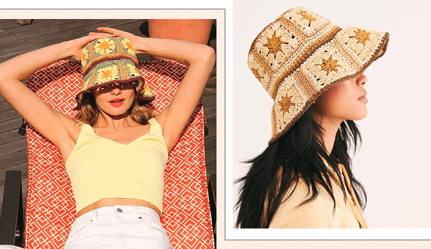 Не самый функциональный, но стильный головной убор, который стоит примерить этим летом ― вязаная шляпка. В тренде модели с полями, как у базовой панамки. Как правило, такие шляпы вяжут из ярких ниток, придавая им причудливые узоры.