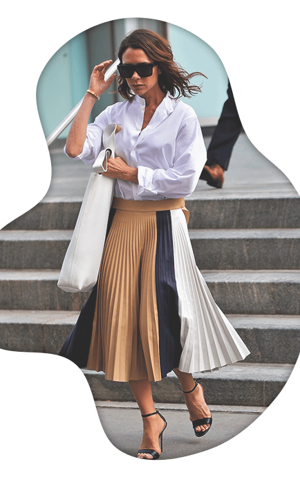 Образ с плиссированной юбкой и рубашкой подойдет как для делового комплекта, так и для того, чтобы отправиться в кафе с подругой.