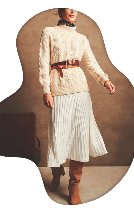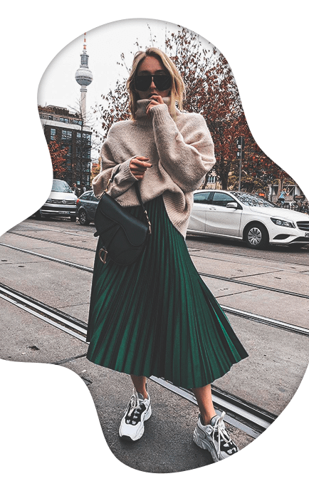 Свитер оверсайз стал одним из самых популярных предметов гардероба. Он отлично сочетается с плиссированными юбками, позволяя создать стильный образ. Можешь заправить его только спереди, чтобы сделать акцент на талии или носить навыпуск. Главное, чтобы образ был уравновешен и не менял пропорции фигуры.