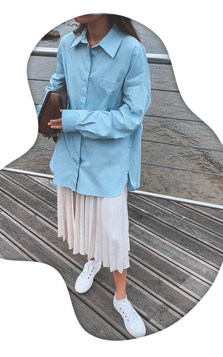 Выбирай приталенную рубашку, чтобы добавить комплекту женственности и романтичности, или стильные модели оверсайз, которые находятся на пике популярности. Заправить или носить навыпуск — выбор остается за тобой, как и обувь, которую используешь в образе.