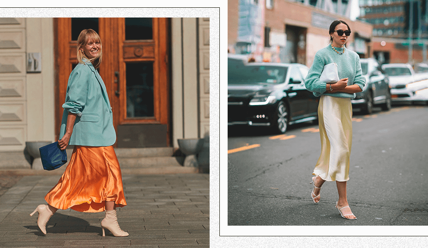 В 2023 году в моде женственность и элегантность. Подтверждает это тот факт, что почти все именитые дизайнеры в своих коллекциях весна-лето 2023 представили одежду из атласа. В том числе юбки длины миди.