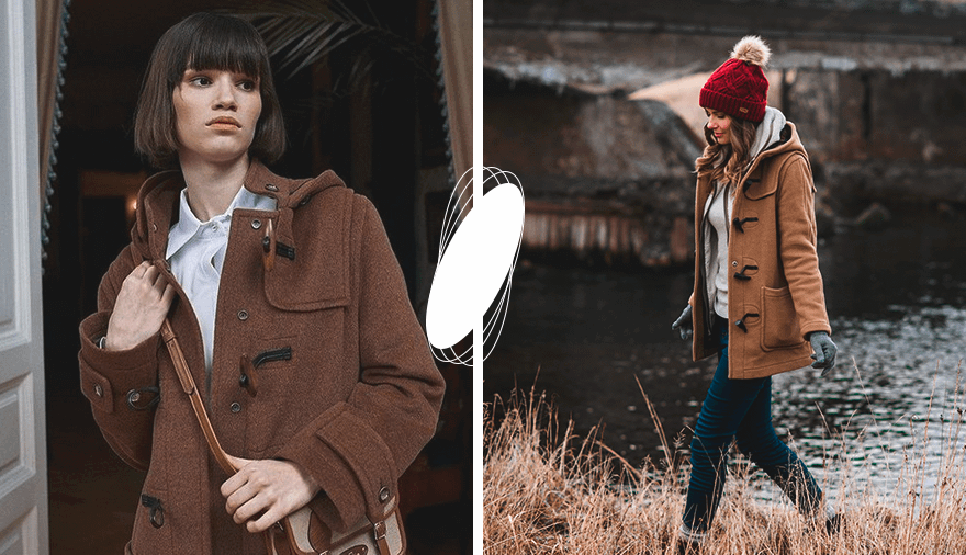 Дафлкот — это прямое пальто средней длины с накладными карманами и крупными пуговицами. Чаще всего пуговицы напоминают по форме моржовые клыки и отличаются от основного цвета пальто.