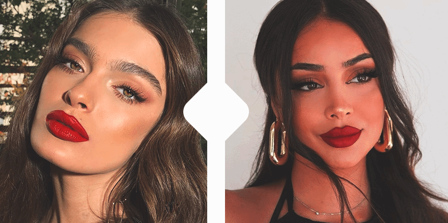 Помады насыщенного, слегка затемненного красного цвета идеально подходят для создания образа в итальянском стиле. Особенно эффектно этот оттенок помады выглядит на пухлых губах.