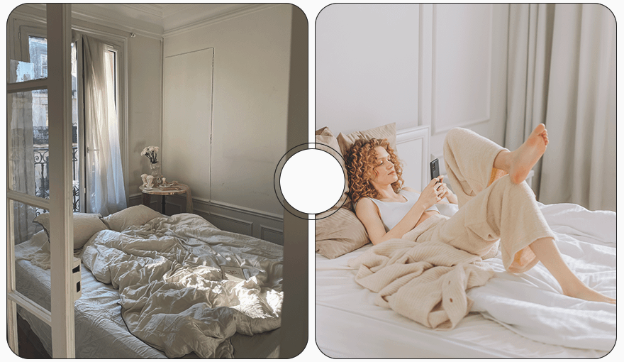 Для того чтобы проснуться, человеку нужно естественное освещение. И оставляя шторы закрытыми по утрам, ты лишаешь себя бодрости, которой хватит на целый день. А если за окном пасмурно, стоит обязательно включать искусственное освещение.