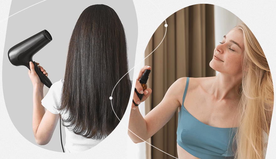 И не забывай перед использованием фена наносить на волосы термозащиту. Она убережет их от повреждений, сделает более шелковистыми и послушными.
