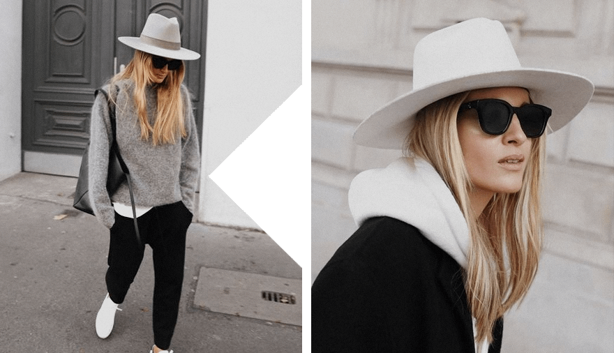 Если раньше шляпы сочетали только с классической одеждой, сегодня стилисты рекомендуют не бояться смелых экспериментов. Например, носить шляпу в одном образе с шакетом и оверсайз худи. Модели с прямыми слегка удлиненными полями выглядят уместно и в сочетании с базовыми свитерами, кедами и брюками.
