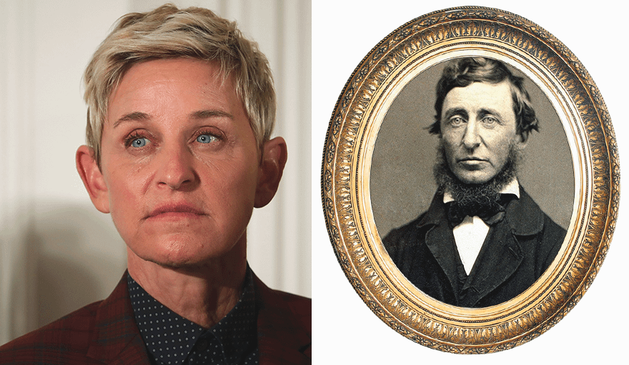 Эллен Дедженерес, актриса и ведущая телевизионных шоу, имеет очень необычного исторического двойника. Это писатель Генри Дэвид Торо, который жил в США в 1817-1862 годах.