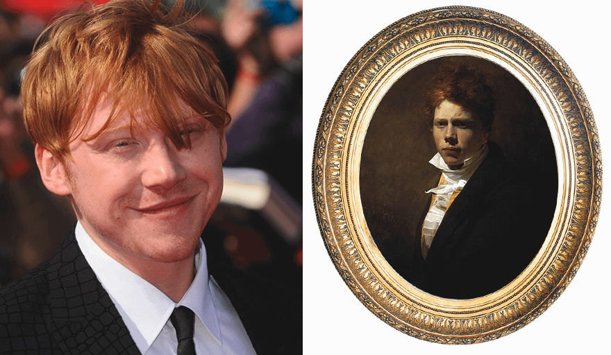Интересно, когда два похожих чертами лица человека еще и оба талантливы. Например, актер Руперт Гринт, запомнившийся миллионам по роли Рона из «Гарри Поттера» и Дэйвид Уилки — шотландский художник, родившийся в 1780-х годах.