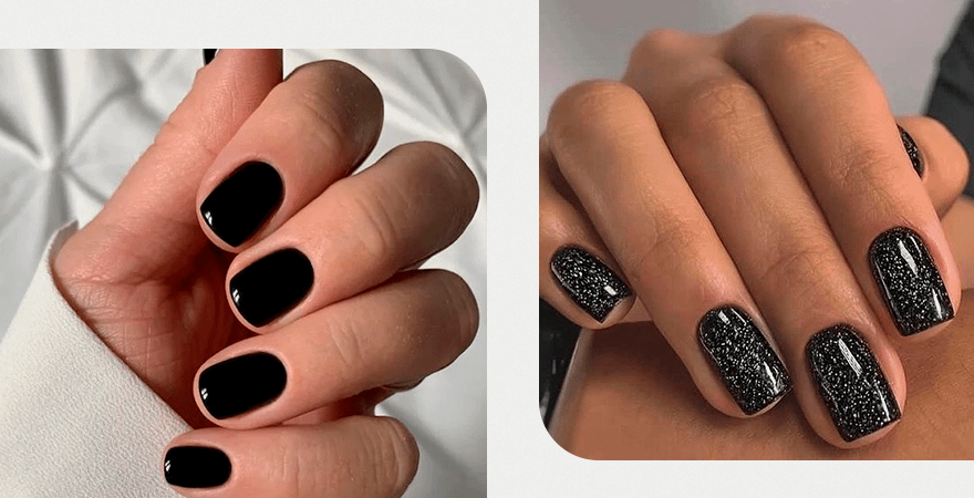 Но если черный маникюр кажется тебе скучным, ты можешь разнообразить его. Попроси мастера дополнить его стразами, наклейками или другими украшениями. Ну или вместо обычного черного лака используйте покрытие с мелкими блестками в серебристом или золотом оттенке.