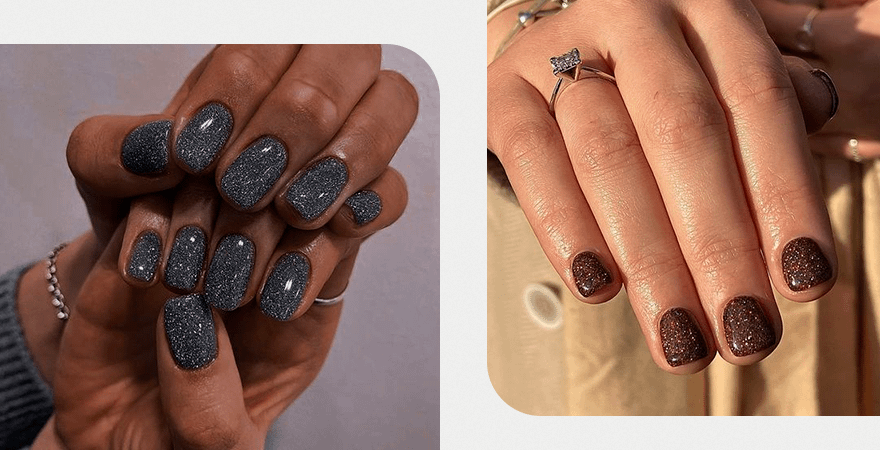 Яркий маникюр — идеальный вариант для тех, кто уже прощается с осенью и готовится создавать новогоднее настроение. При этом вовсе не обязательно делать блестящий маникюр в красном или зеленом оттенках, которые ассоциируются с зимними праздниками. Графитовое, серебристое или темно-фиолетовое покрытие будет выглядеть не менее удачно.