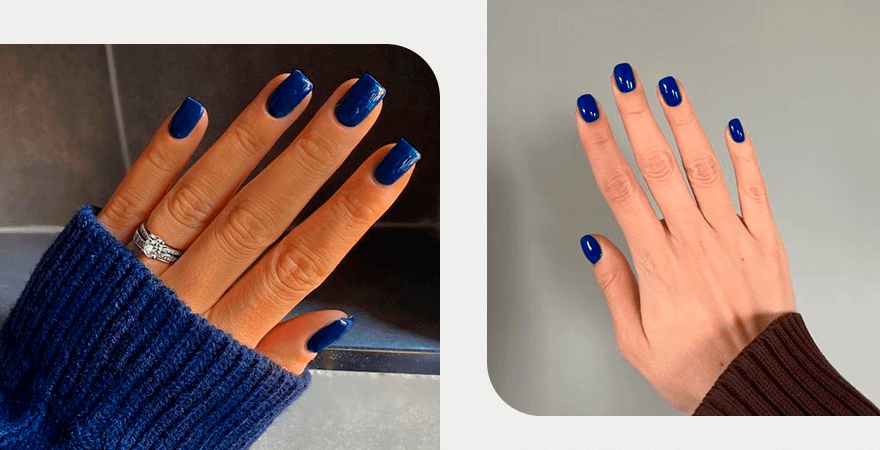 Это еще один универсальный цвет, актуальный в этом сезоне. Маникюр в темно-синем оттенке идеально выглядит в сочетании с белой рубашкой и другой классической одеждой. Поэтому тем, кто работает в офисе с дресс-кодом, рекомендуем обратить на этот цвет особое внимание.