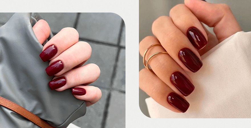 Эффектный и стильный темно-бордовый маникюр хорошо выглядит как на коротких, так и на длинных ногтях. Его плюс в том, что он визуально осветляет кожу и делает пальцы более тонкими.