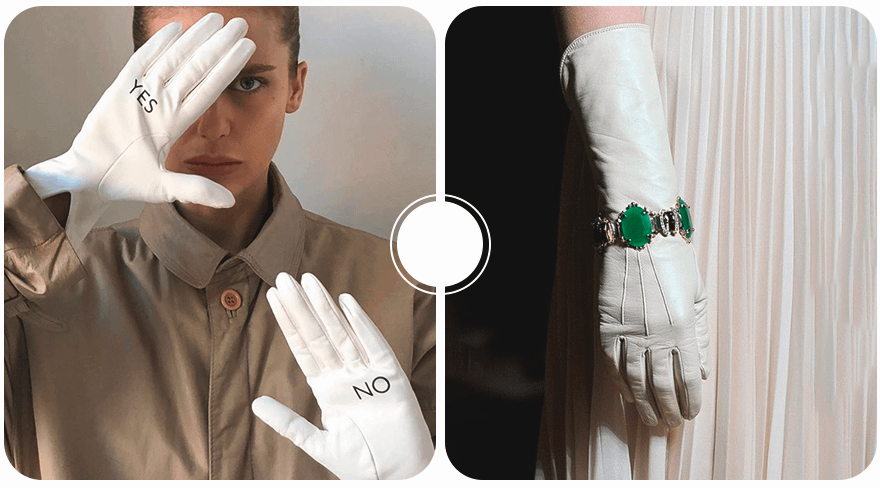 Однотонные кожаные, с вышивкой в форме цветов или фабричным принтом: вне зависимости от того, какие перчатки ты выберешь, точно будешь в тренде, если они белые.